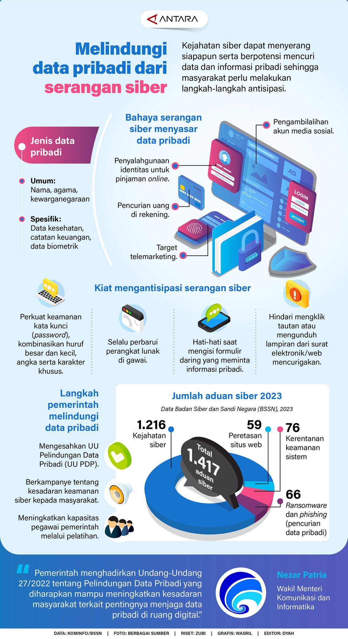 Kejahatan siber dapat menyerang siapapun serta berpotensi merusak data dan informasi pribadi sehingga masyarakat perlu melakukan langkah-langkah antisipasi (ANTARA))