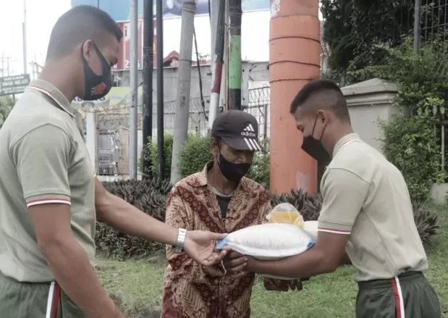 Sejumlah prajurit Yonmek 403/WP dibawah pimpinan Komandan Batalyon (Danyon) 403/WP Letkol Inf Helmy, Jumat (25/2/2022) melaksanakan bakti sosial berupa pembagian paket sembako kepada masyarakat yang tinggal dan berada di lingkungan asrama atau ksatrian Yonmek 403/WP.