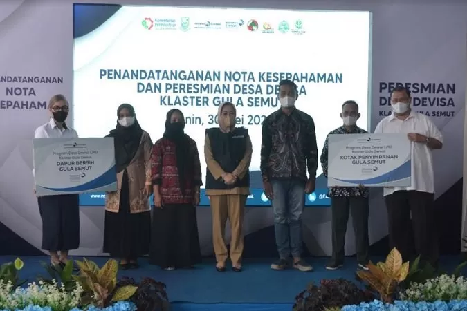 PURBALINGGA, KRJOGJA.com – Lembaga Pembiayaan Ekspor Indonesia (LPEI) menandatangani Nota Kerjasama dengan Kementerian Perindustrian (Kemenperin) melalui program Desa Devisa untuk meningkatkan ekspor yang berkelanjutan, Senin (30/5/2022). Kabupaten Purbalingga menjadi salah satu lokus Desa Devisa yang akan mendapatkan pendampingan khususnya untuk klaster Industri Kecil Menengah (IKM) gula serbuk.