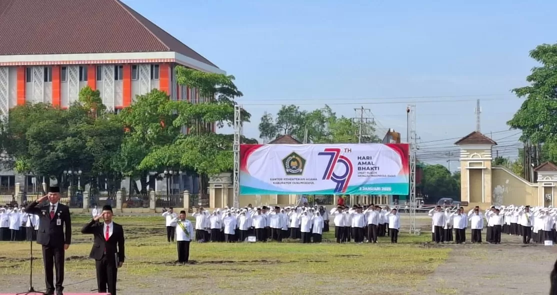 “ Selain itu meningkatkan harmonisasi, termasuk dengan lingkungan, alam. Serta meningkatkan toleransi antar umat beragama, hingga tercapai masyarakat yang adil,” kata H Sunaryanta ketika membacakan sambutan Menteri Agama di Upacara Peringatan HAB ke79 di alun alun Wonosari, Jumat (03/01/2024).