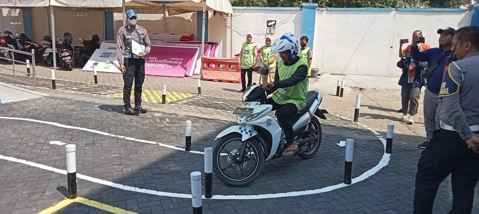 Krjogja.com - KARANGANYAR - Satlantas Polres Karanganyar mulai memberlakukan skema ujian praktik SIM C terbaru mulai Senin lalu (7/8/2023). Selain lebih mudah, peserta ujian dipersilakan mengikuti bimbingan belajar di luar jam reguler.
