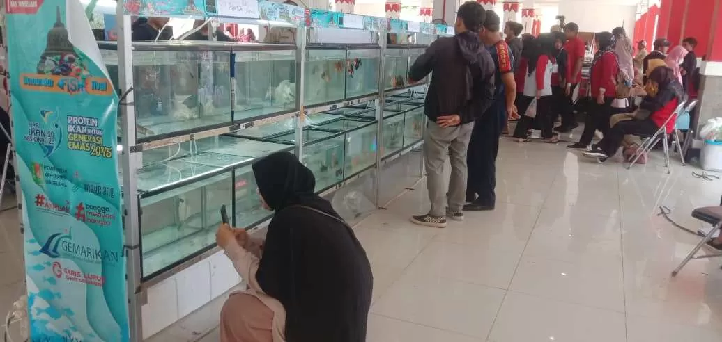 MAGELANG (KRJogja.com) – “Borobudur Fish-Tival” kembali digelar oleh Dinas Peternakan dan Perikanan Kabupaten Magelang di Pendopo Lapangan Soepardi Sawitan, Selasa (25/11/2025). Acara dua hari ini digelar dalam rangka memperingati Hari Ikan Nasional 2025 tingkat Kabupaten Magelang, menghadirkan pameran ikan, kontes ikan hias, bazar UMKM, hingga lomba inovasi perikanan.
