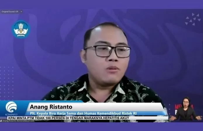 Demikian disampaikan Anang Ristanto selaku Plt Kepala Biro Kerja Sama dan Humas Kemendikbud dalam diskusi daring yang digelar Forum Merdeka Barat 9 bertajuk "Hepatitis Akut Dicegah, Sekolah PTM Aman" pada Senin (23/5/22).