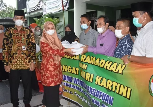 SLEMAN, KRJOGJA.com - Dharma Wanita Persatuan (DWP) Kantor Kementerian Agama (Kemenag) Sleman melakukan kegiatan bagi-bagi hidangan buka puasa untuk warga panti asuhan dan pegawai tidak tetap (PTT) serta masyarakat sekitar di Kemenag Sleman.