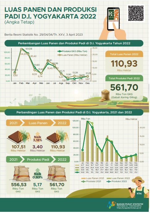 Dia menambahkan produksi beras tertinggi pada 2022 terjadi pada bulan Februari, yaitu sebesar 68,68 ribu ton. Sementara itu, produksi beras terendah terjadi pada bulan September, yaitu sebesar 6,8 ribu ton. Pada Januari 2023, produksi beras diperkirakan sebanyak 26,3 ribu ton beras, dan potensi produksi beras sepanjang Februari hingga April 2023 ialah sebesar 138,8 ribu ton. "Dengan demikian, potensi produksi beras pada Subround Januari−April 2023 diperkirakan mencapai 168,08 ribu ton beras atau mengalami penurunan sebesar 14,93 ribu ton (8,3 persen) dibandingkan dengan produksi beras pada Januari−April 2022 yang sebesar 180,01 ribu ton beras," pungkasnya. (*)