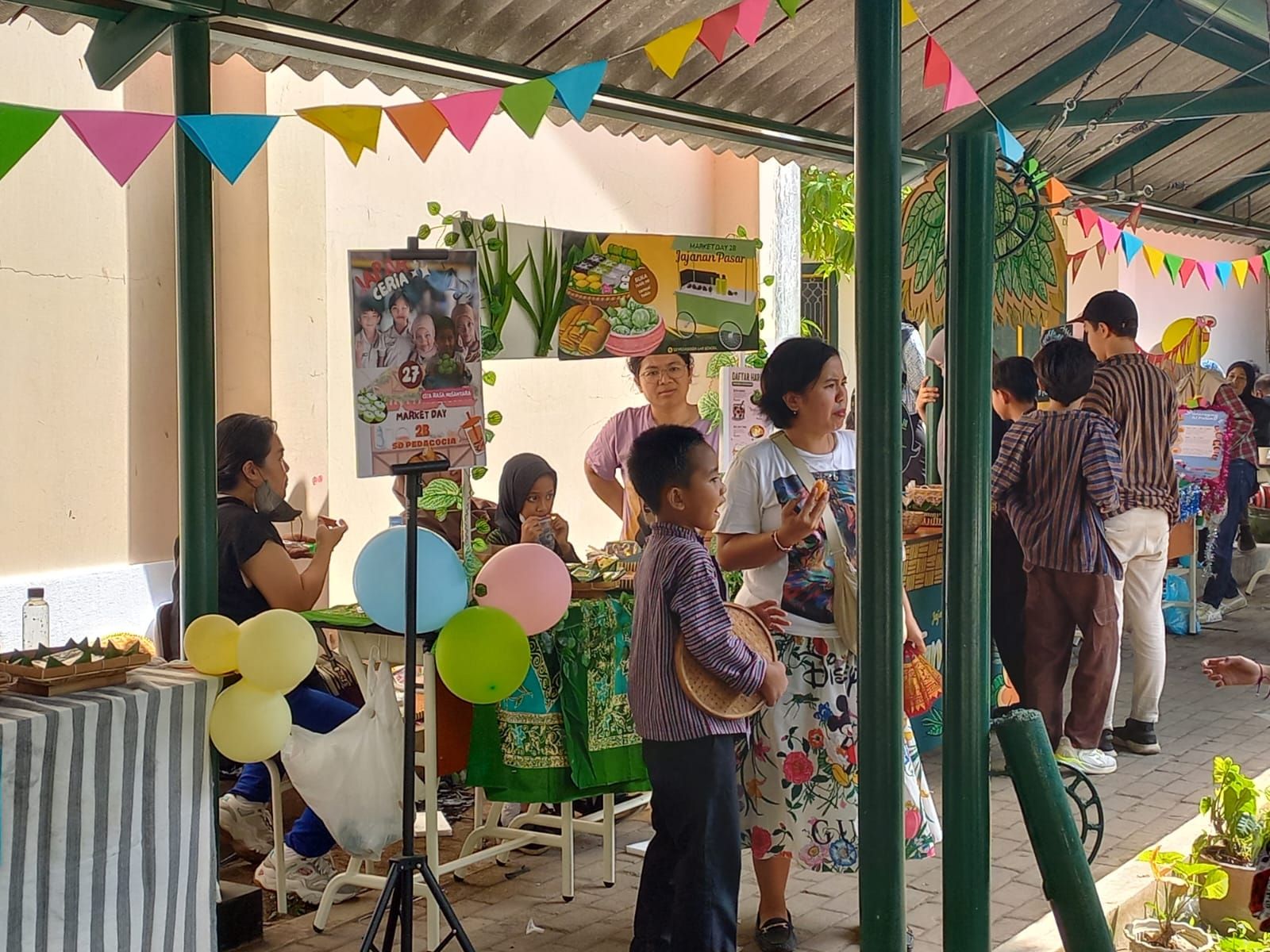 Pendapa SD disulap seperti 'pasar tiban' yang menampilkan kemeriahan setiap stand dari setiap perwakilan kelas lengkap dengan produk kuliner berupa makanan dan minuman yang dipajang. Yang menarik, setiap stand juga didekor dengan kreatif hasil kolaborasi siswa dan orangtua.